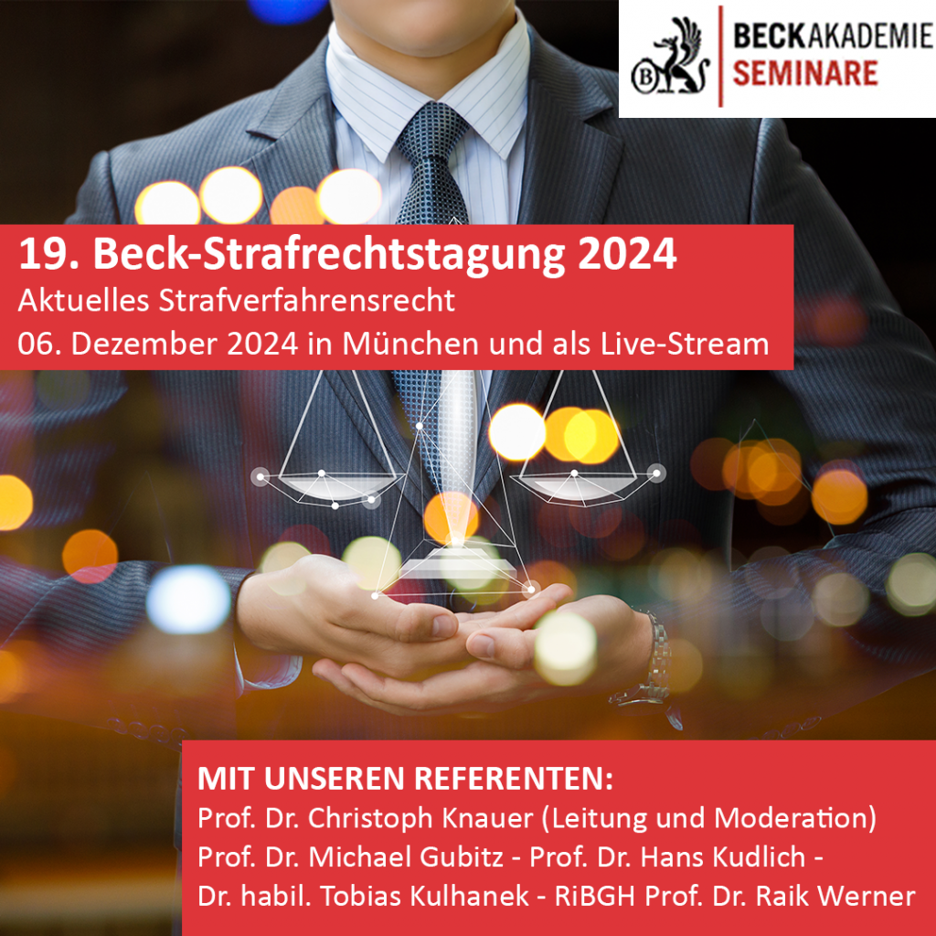 Vorankündigung: 19. Beck-Strafrechtstagung 2024 in München